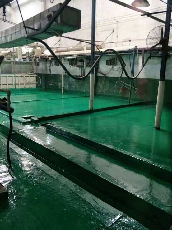 肇慶懷念鉍礦項(xiàng)目施工面積近1500m2,分為二期施工;一期建設(shè)玻璃鋼防腐設(shè)備區(qū),由20臺(tái)玻璃鋼儲(chǔ)罐存儲(chǔ)各種酸堿化學(xué)品介質(zhì),地面采用乙烯基樹(shù)脂玻璃鋼粘+環(huán)氧地坪玻纖防腐,組建成一個(gè)集中式的庫(kù)存區(qū)域。二期施工建設(shè)是礦區(qū)主要工作區(qū)域全面實(shí)施環(huán)氧玻纖地坪防腐。