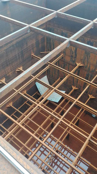 肇慶鐵箱玻璃鋼防腐項目施工面積大約2800多平方,采用5布8油工藝。由于鐵箱位于室外,同時內(nèi)部結(jié)構(gòu)復(fù)雜,施工環(huán)境的影響很大。為了確保施工質(zhì)量,項目部做了大量的應(yīng)急方案,充分考慮現(xiàn)場的天氣情況,組織力量搭建應(yīng)急的避雨設(shè)施。安排現(xiàn)場專人巡視,確保安全生產(chǎn)。
