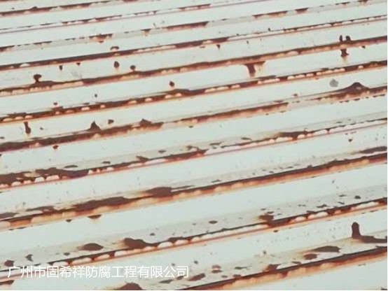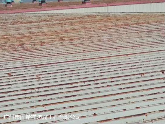 佛山汽車制造車間高度5米,屋頂全部是由彩鋼條組建的屋面。由于使用年限較久,部分屋面出現(xiàn)嚴重的腐蝕造成車間漏水。嚴重影響了正常的工作開展。為了保證此次玻璃鋼防腐施工安全實施,公司前期多次組織技術、工程現(xiàn)場檢測、考察。制定了多項應急處理方案。保證施工安全、有效進行。確保施工質量滿足客戶的需求。